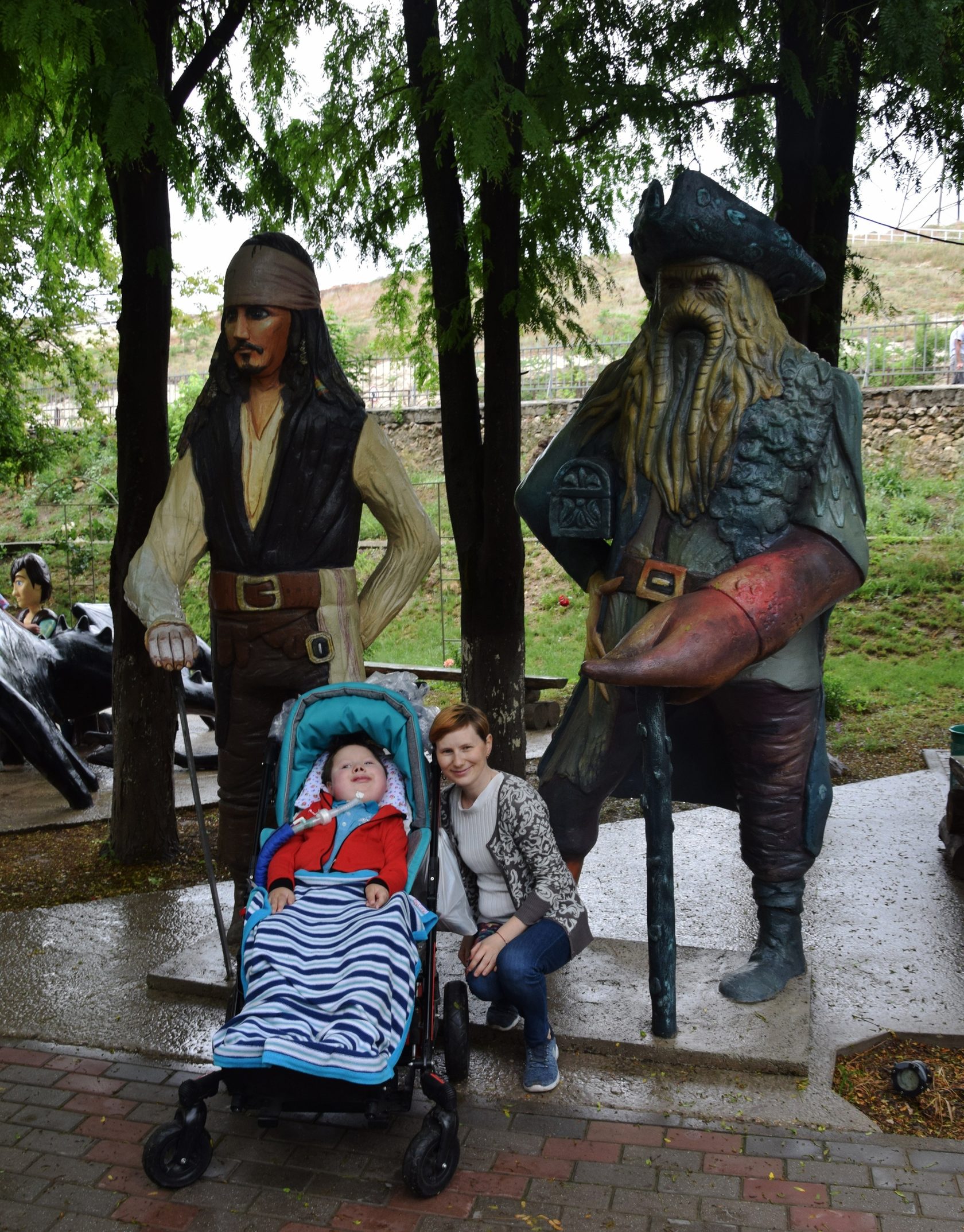 В парке Максиму тоже очень понравилось. Звери и скульптуры из известных мультфильмов у него вызвали не меньший восторг. С большим интересом он наблюдал, как мама кормит зверей. Особенно понравились высоченные верблюды и огромные бурые медведи. Вместе с тем, бурю положительных эмоций вызвала прогулка среди каменных мульт-героев. На фото Максим как раз со своим любимыми персонажами.
